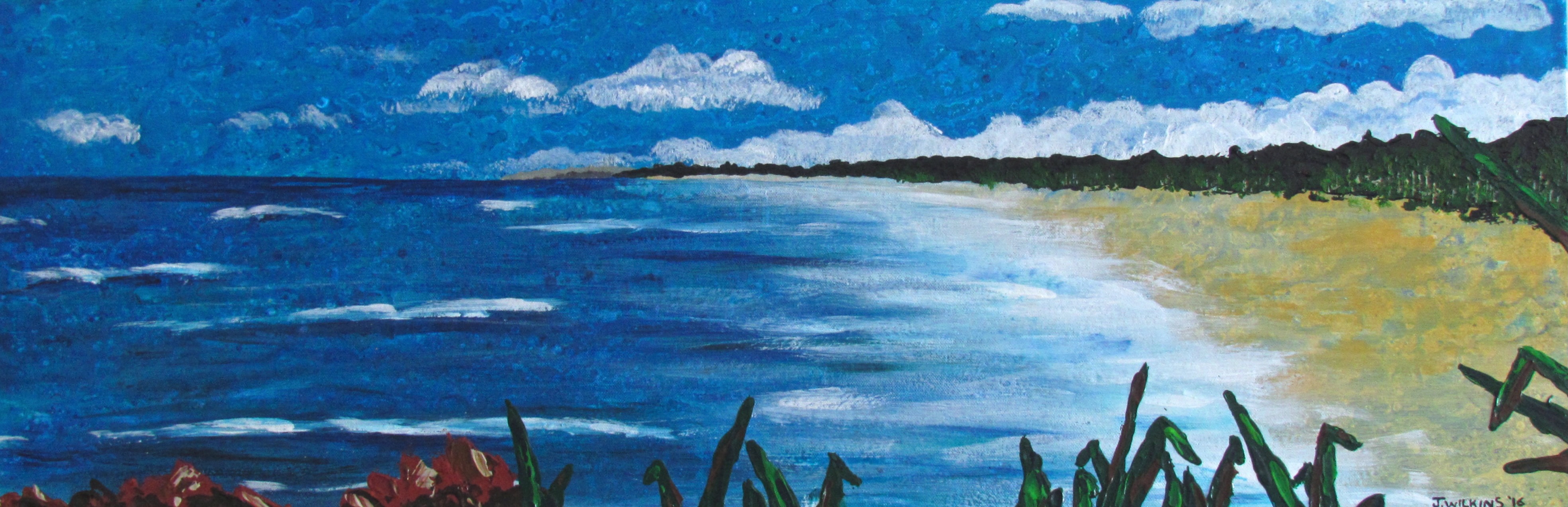 Hastings Point Headland, Acrylic on Canvas, 91 x 31 x 4cm, 2016.