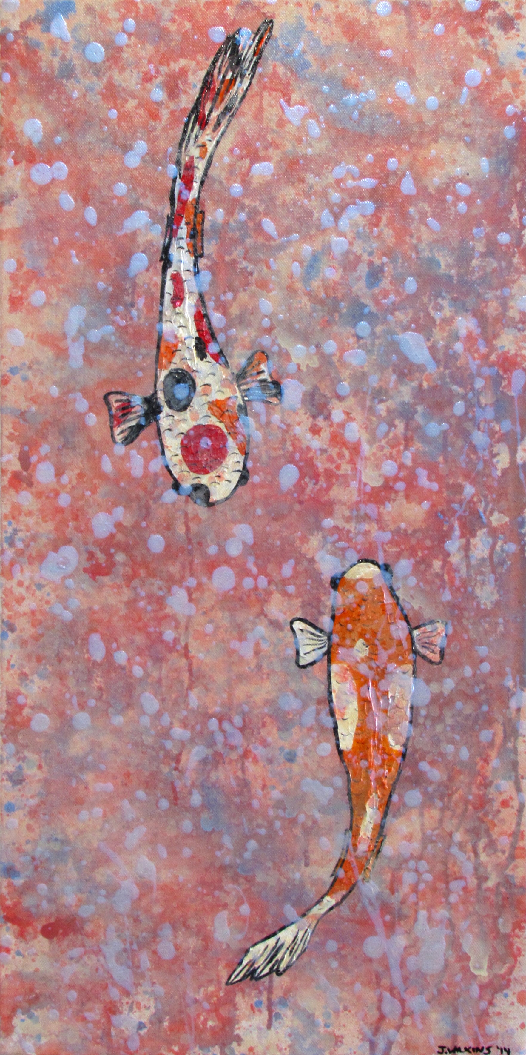 Two Fish, Acrylic on Canvas, 91 x 30 x 4cm, 2014.