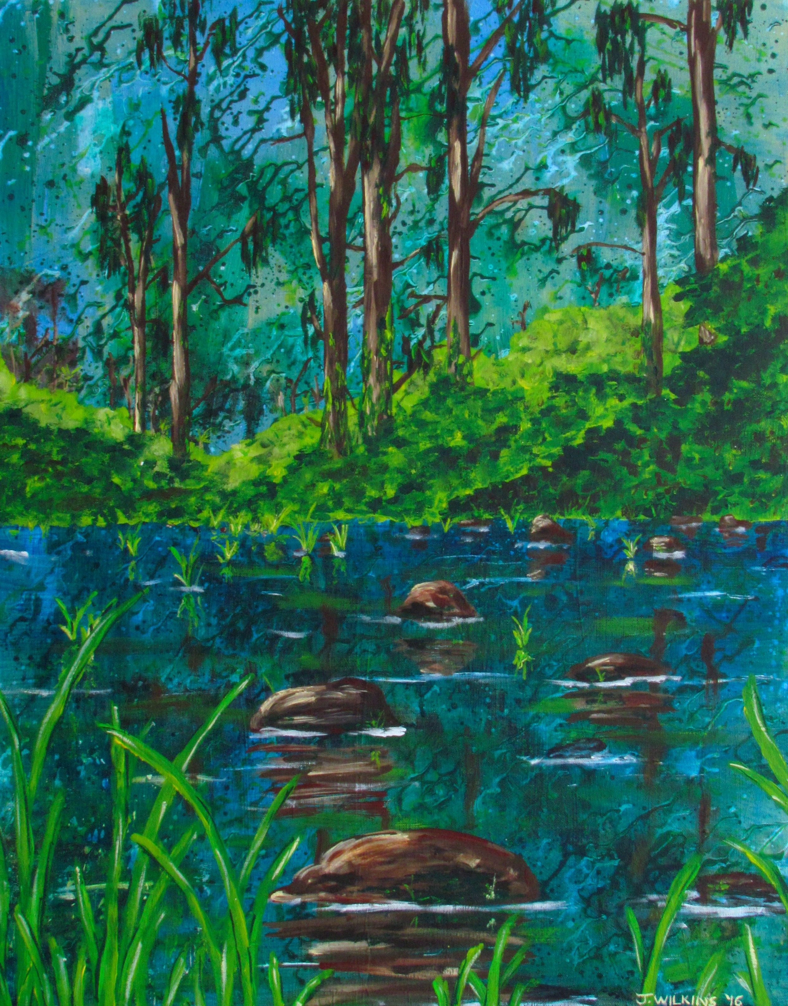 Wild (The Creek Crossing), Acrylic on Canvas, 61 x 77 x 4cm, 2016.